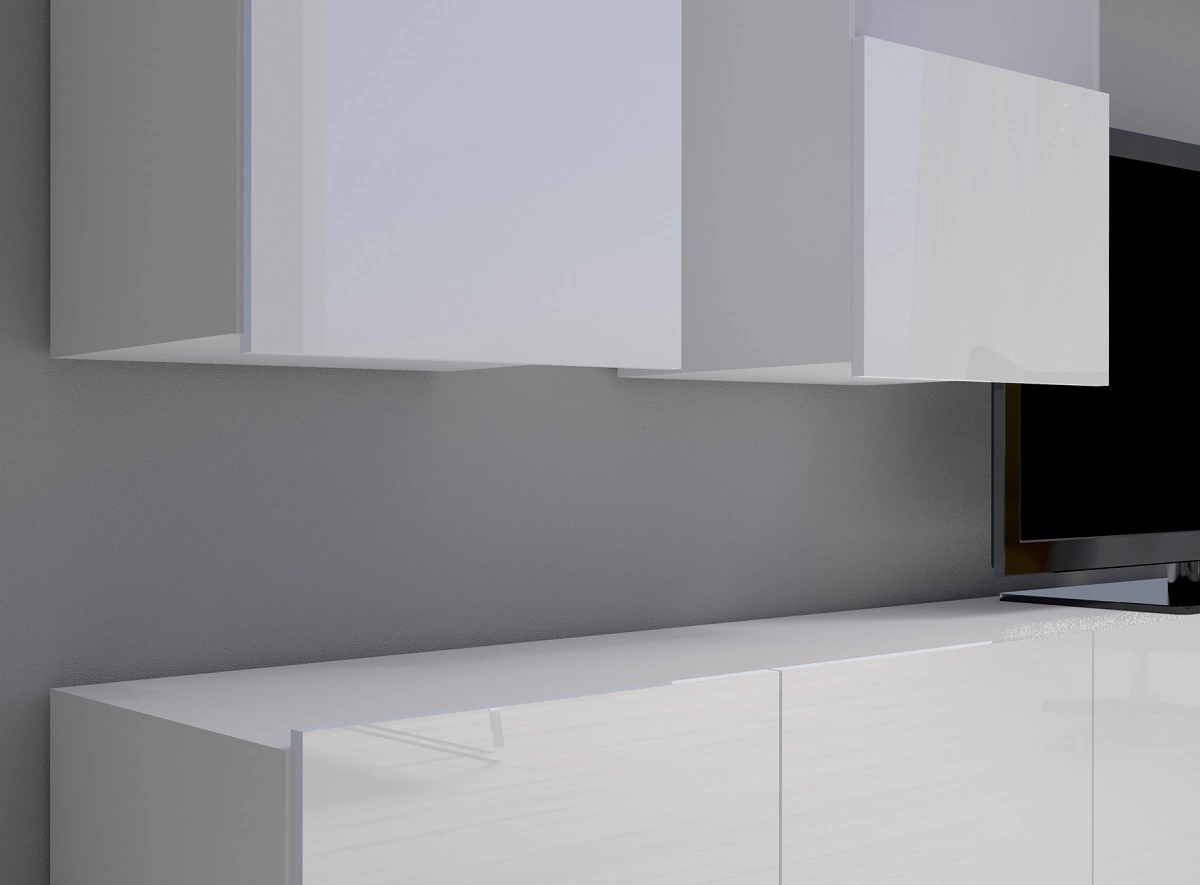 Apulia 100 cm RTV Schrank in weiß glänzend mit der Möglichkeit der Aufhängung minimalistisches Design einfache Form passend in jedes Interieur