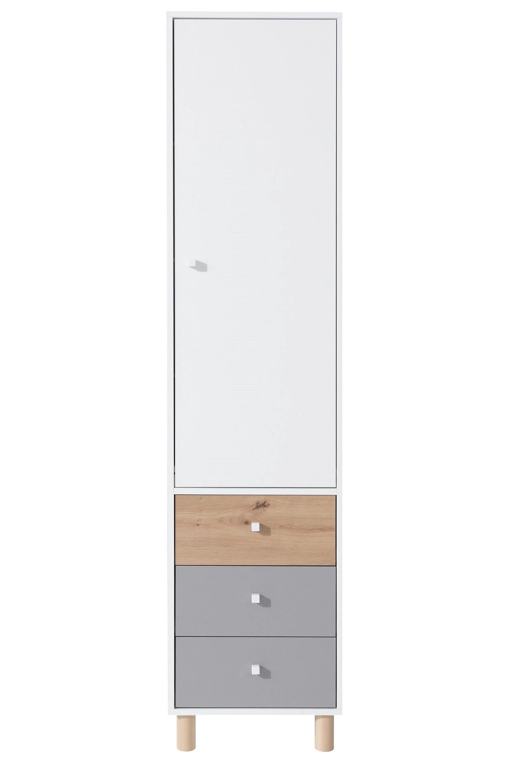Bücherregal mit Schubladen Beja 45 cm weiß / artisan Eiche / grau ideal für das Jugendzimmer funktional und geräumig
