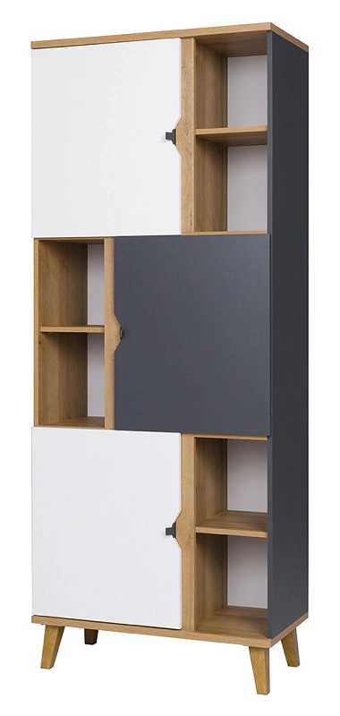 Bücherregal mit Türen Memone 80 cm goldene Eiche / weiß / graphit ideales Bücherregal für Jugend- oder Kinderzimmer im skandinavischen Stil