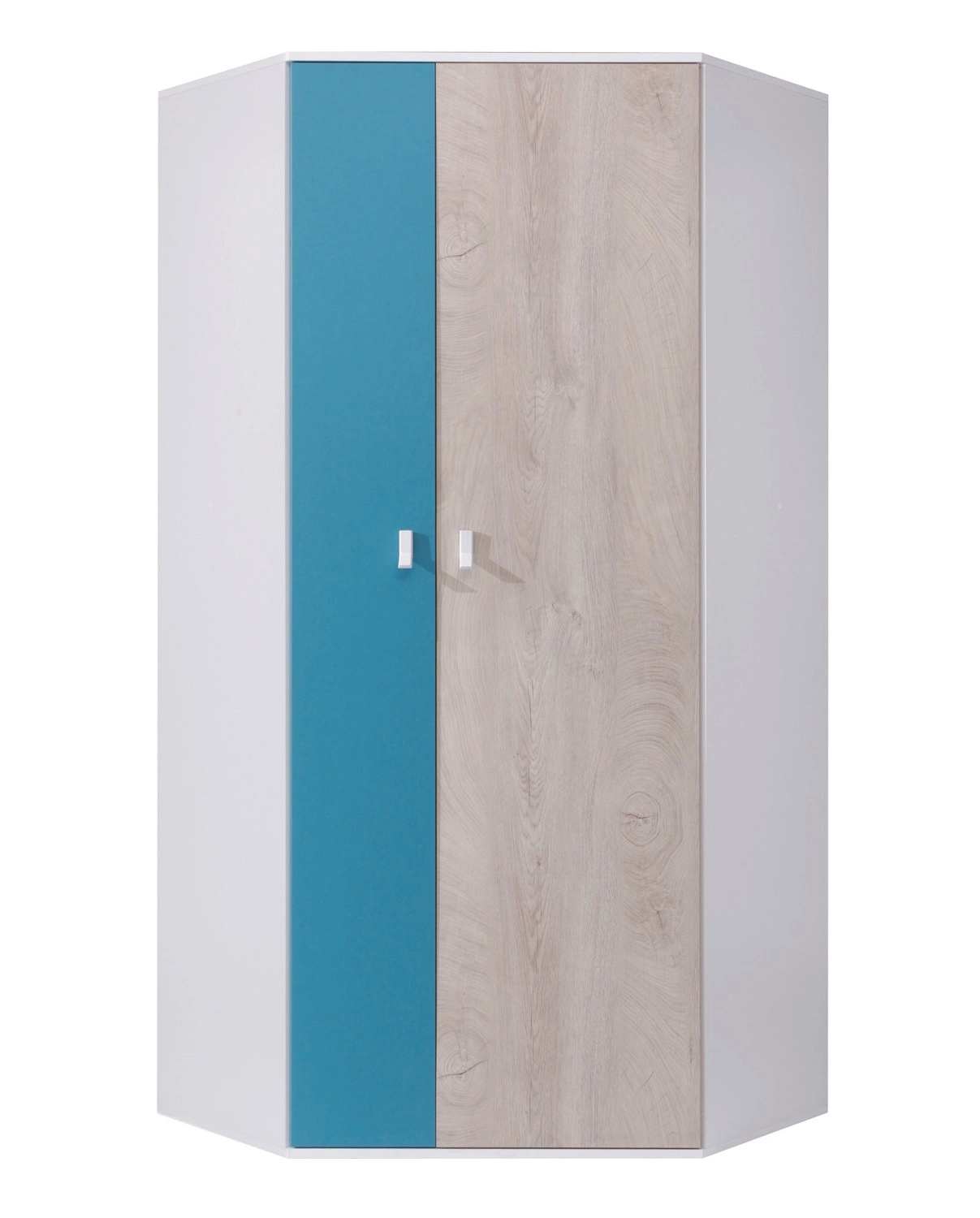 Eckschrank Niko in weiß / Eiche / Marine ist ein Rezept für eine moderne und funktionale Jugendzimmereinrichtung.