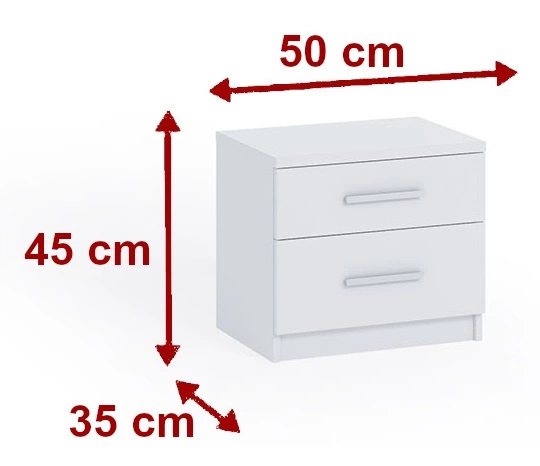 Geräumig schubladen bietet Platz für sämtliches Zubehör. Der Nachttisch ist hergestellt aus laminierter Platte von hoher Qualität, die resistent gegen äußere Einflüsse wie Druckstellen, Stöße und unglückliche Kratzer ist. Die stilvollen Abschlüsse der Schubladenfronten sind silber griffe, die zusätzlich zu ihrer Hauptfunktion ein äußerst geschmackvolles Erscheinungsbild bieten.