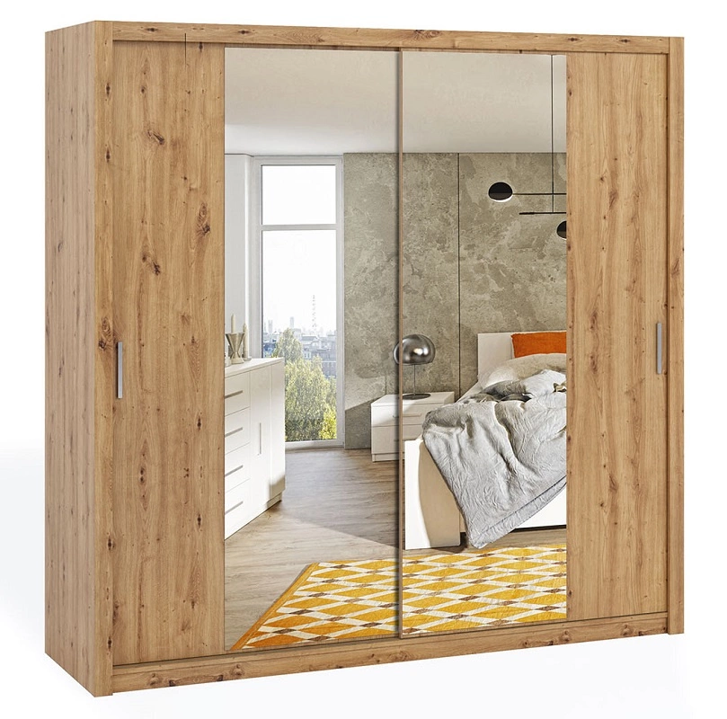Die Möbel sind konstruiert aus 2 Schiebetüren mit großen Spiegeln. Das Kabinett garantiert bequem i nahtlos vergnügen und haltbarkeit des gesamten Möbelstücks für viele Jahre der Nutzung. Das schlichte Design macht den Schrank zu einer gelungenen Raumgarderobe ein Kinderkleiderschrank, ein Kleiderschrank für das Schlafzimmer oder als Dielenschrank. Rico-Garderobe wird auch eine gute Wahl für den Raum baby. Er eignet sich auch perfekt als Garderobe für den Flur.