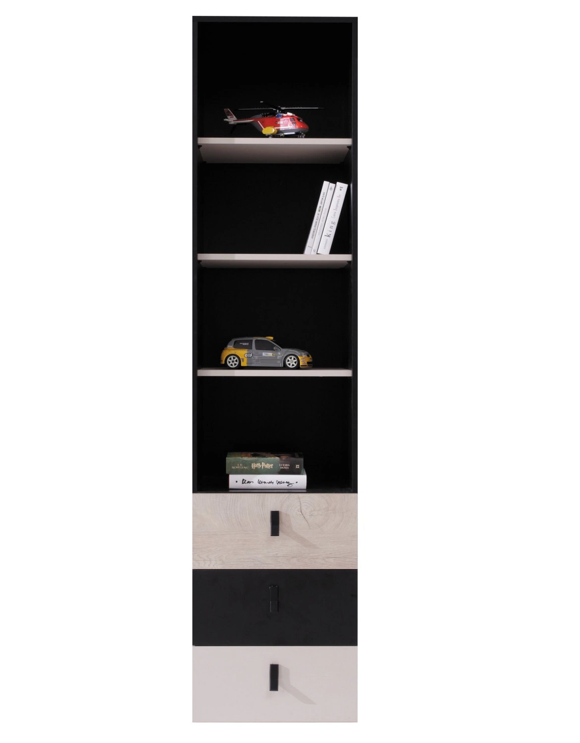 Bücherregal mit Schubladen Niko 45 cm schwarz / Eiche / beige ideal für das Jugendzimmer sehr nützlich und hat einen modernen Look