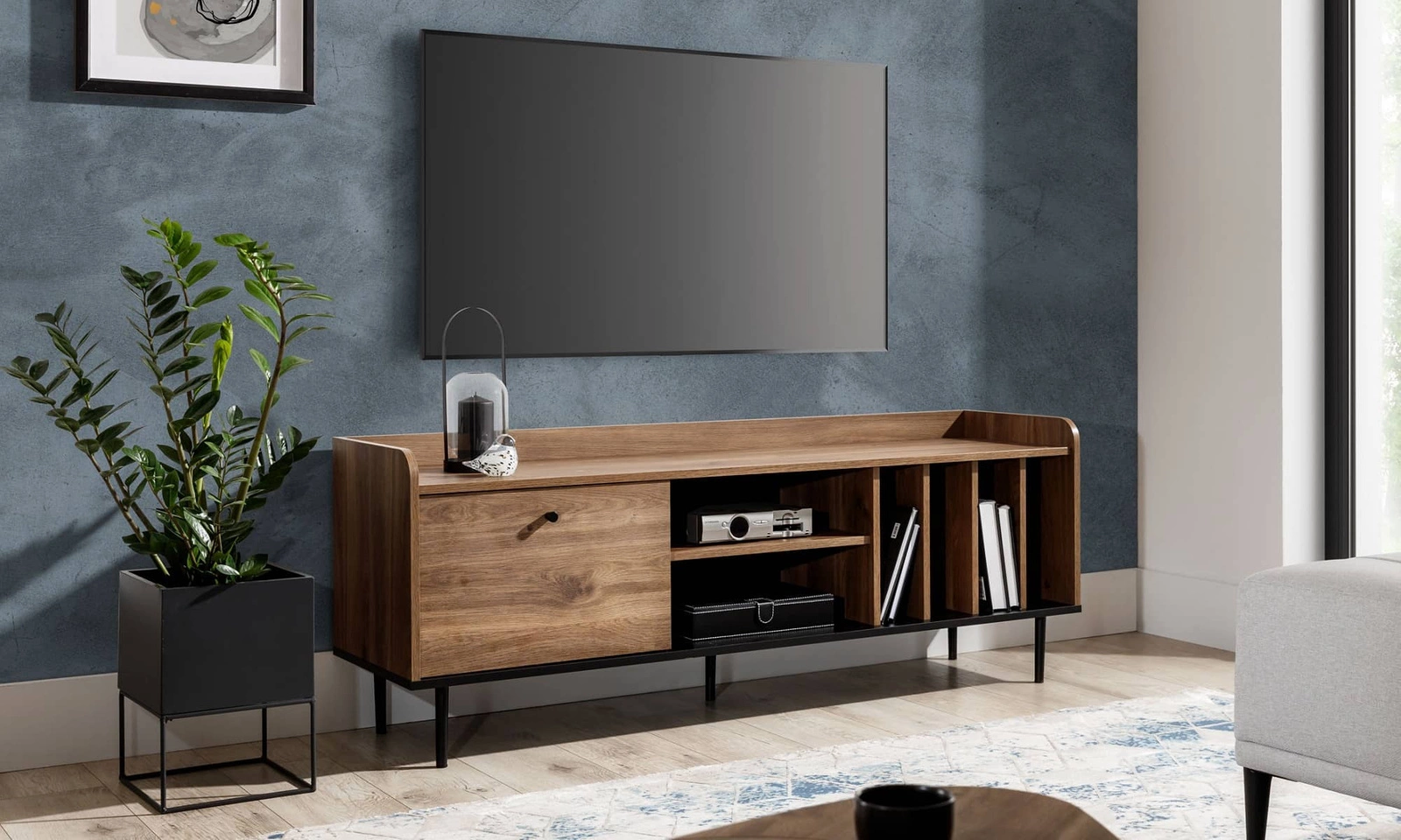 Der TV-Schrank Apallo 150 cm ist ein einfaches, aber sehr elegantes und originelles Möbelstück.