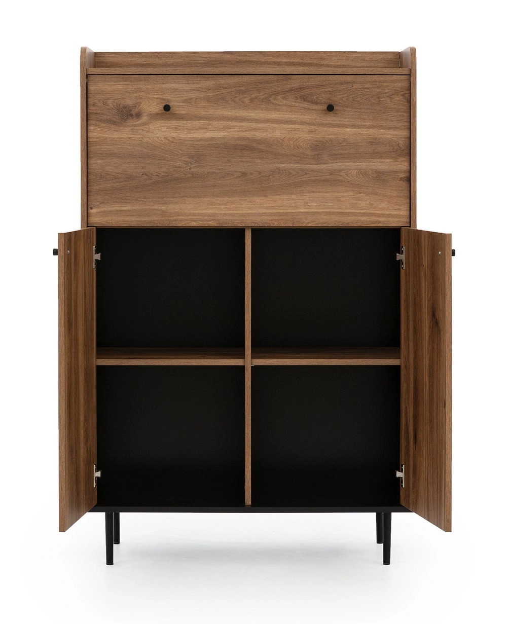 - Das Apallo-Möbelset ist ein einfaches, aber sehr elegantes und originelles Möbelstück. Die faszinierende dunkelbraune Farbe der Fronten harmoniert perfekt mit den schwarzen Accessoires und verleiht den Möbeln einen Loft-Charakter. Die hohen Kanten der Abd