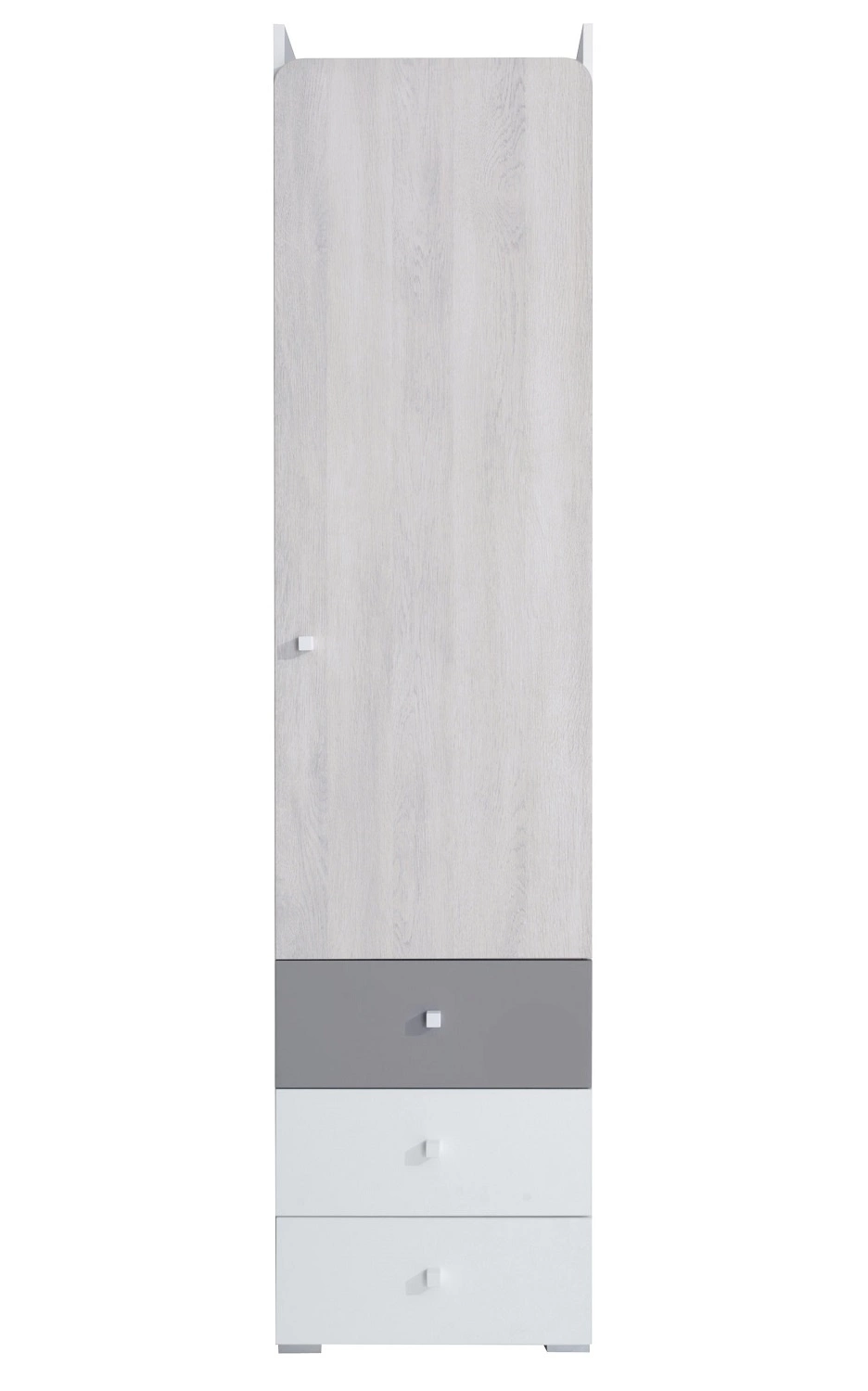 Das Gestell ist konstruiert aus 1 Tür und 3 Schubladen. Der geschlossene Bereich ist mit Regalen ausgestattet. Ergänzung der Bücherregalfronten sind raffinierte Griffe, die neben ihrer Hauptfunktion einen stilvollen Akzent setzen.