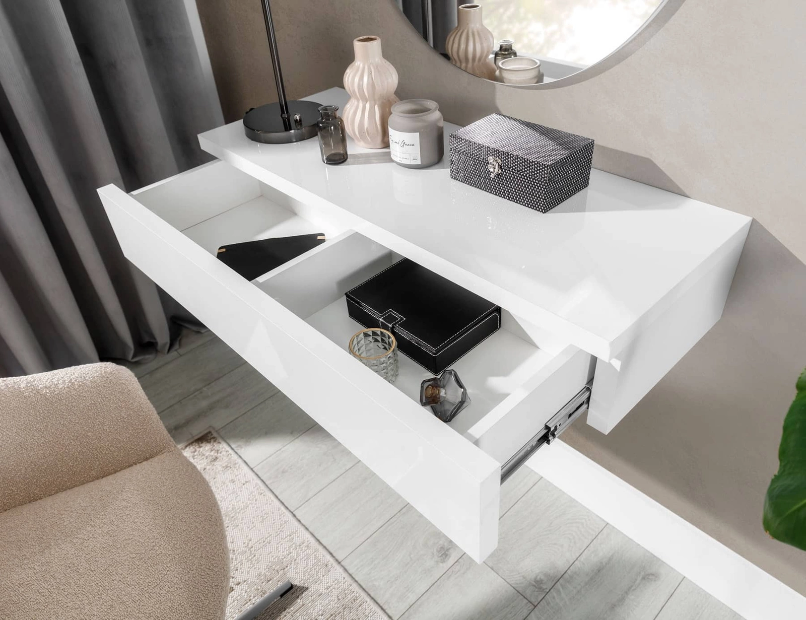 Toaletka Navene 100 cm w kolorze białym Toaletka z lustrem Toaletka wisząca z szufladą