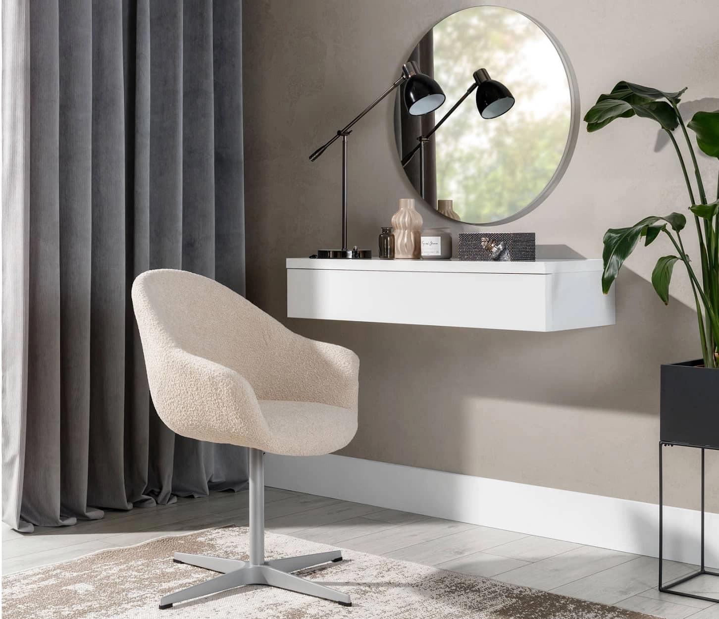 Der Schminktisch Navene verbindet Minimalismus mit Funktionalität.