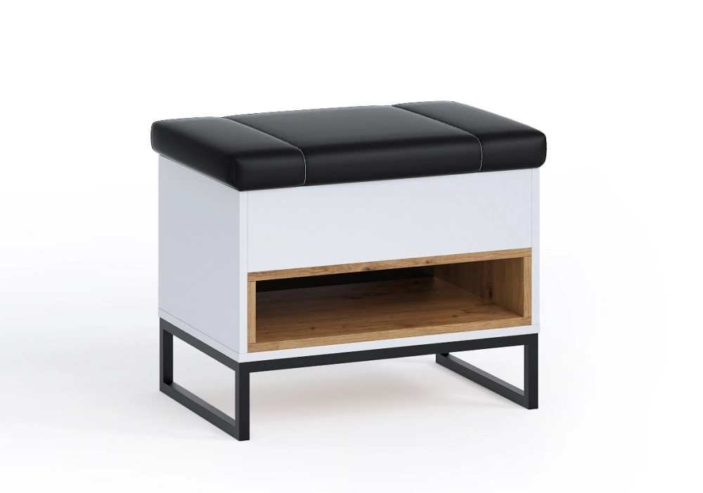 Der Loft-Stil entspricht perfekt den aktuellen Einrichtungstrends, wodurch sich die Möbel der Kollektion Olier leicht in einer Garderobe, einem Schlafzimmer oder einem Flur unterbringen lassen. Geräumiger Kofferraum mit aufklappbarem Sitz stauraum für all Ihre Habseligkeiten und wichtigen Accessoires. Schuhschrank garantiert komfortable und problemlose Nutzung und Langlebigkeit des gesamten Möbelstücks für viele Jahre der Nutzung.