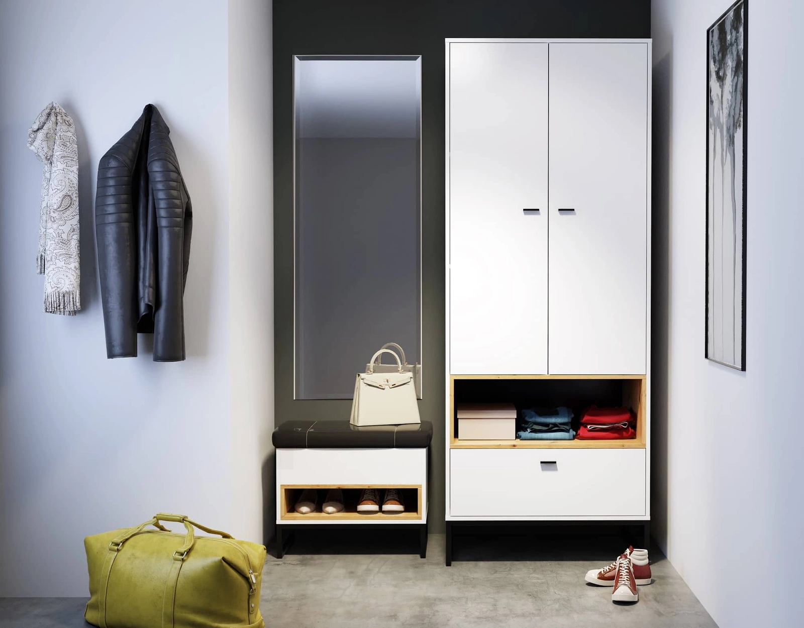 Der Loft-Stil korrespondiert perfekt mit den aktuellen Einrichtungstrends, wodurch sich die Möbel der Olier-Kollektion leicht in einer Garderobe, einem Schlafzimmer oder einem Flur unterbringen lassen. Das Spiegelpaneel ist zum Aufhängen an der Wand geeignet und garantiert komfortable und problemlose Nutzung und Langlebigkeit über viele Jahre der Nutzung.