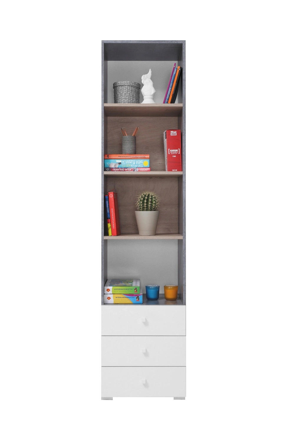 Regal mit Schubladen Epsilon 45 cm Beton / weiß / Eiche ideal für Jugendzimmer nutzbar Bücherregal modernes Design