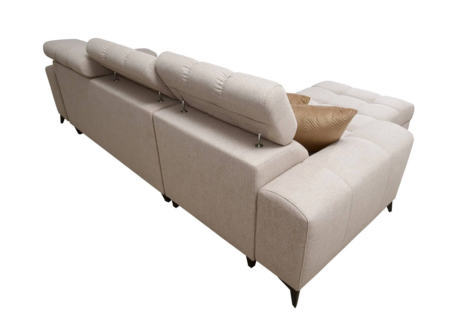 Die Abmessungen der Möbel sind optimal. Breite der Ecke 265 cm, maximale Höhe 100 cm und Tiefe 169 cm. Die Liegefläche der Eckeinheit beträgt 127x205 cm. Die Sitzhöhe des Möbels beträgt 45 cm und die maximale Höhe der Rückenlehne beträgt 60 cm. Gewellte Federn und T30-Polyurethanschaum ist das Material, aus dem der Sitz der Ecke hergestellt ist. Feste Rückenlehne mit verstellbaren Kopfstützen garantiert komfortable Entspannung nach einem langen Tag, die Sie, Ihre Lieben und auch Gäste, die auf diesem einzigartigen Ecksofa sitzen, zu schätzen wissen werden!