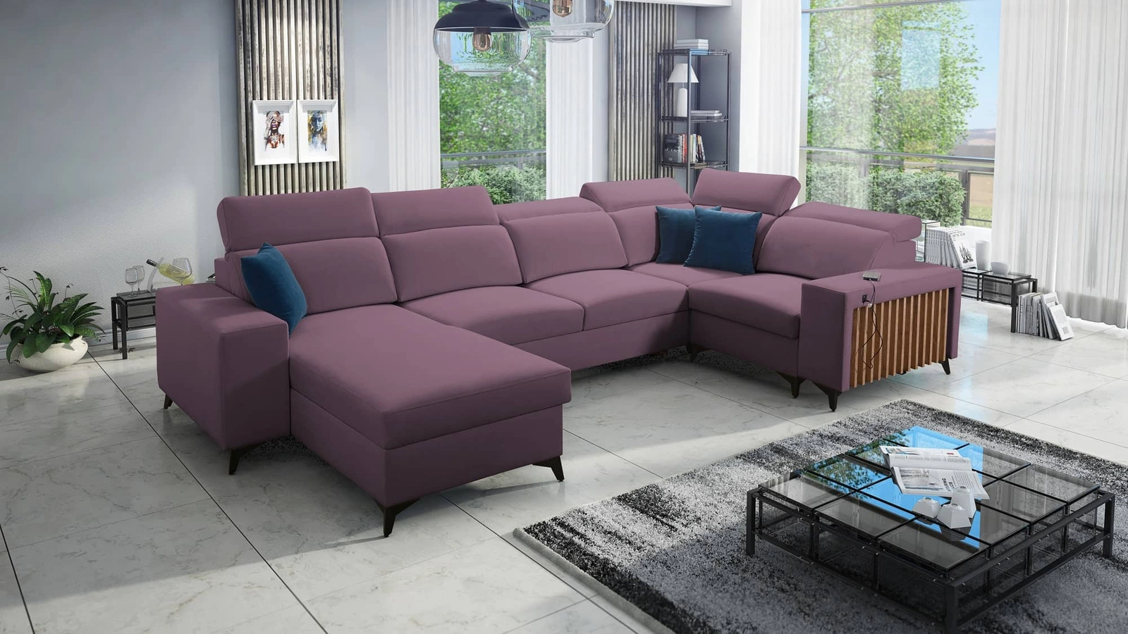 Ecksofa Kelly IV in heather mit verstellbaren Kopfstützen ist ein interessant aussehendes Möbelstück mit der Garantie für höchsten Komfort und Funktionalität.
