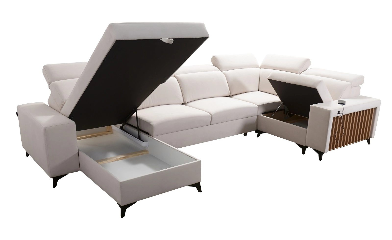 Die Extras dieses Möbels, die alle Benutzer zu schätzen wissen, sind die beiden Bettkästen, die Schlaffunktion, die USB-Ladebuchse an der Seite der Ecke zum Aufladen des Telefons und anderer Multimedia-Geräte.