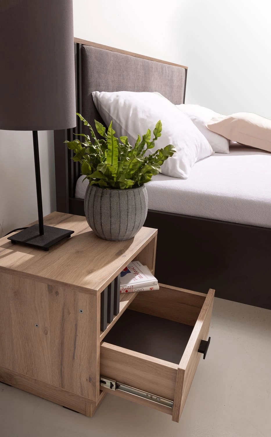 Estan Schlafzimmermöbel-Set in Eiche estan hell / anthrazit ist das ideale Möbel für die Einrichtung eines Schlafzimmers oder eines Jugendzimmers.