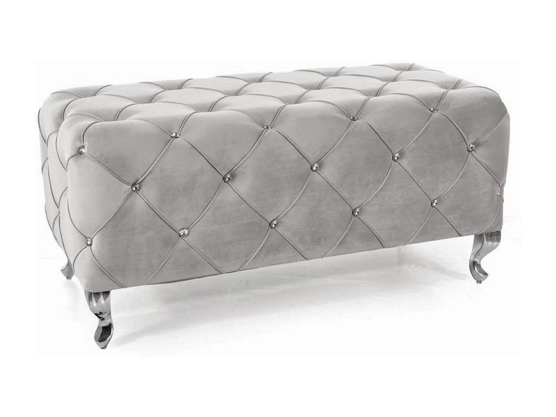 Hesta Pouffe 100 cm hellgrau ideal Hocker schmutzabweisend und kratzfest Sitz Pouffe wird als eine gepolsterte Bank gesteppte Elemente mit Kristallen arbeiten