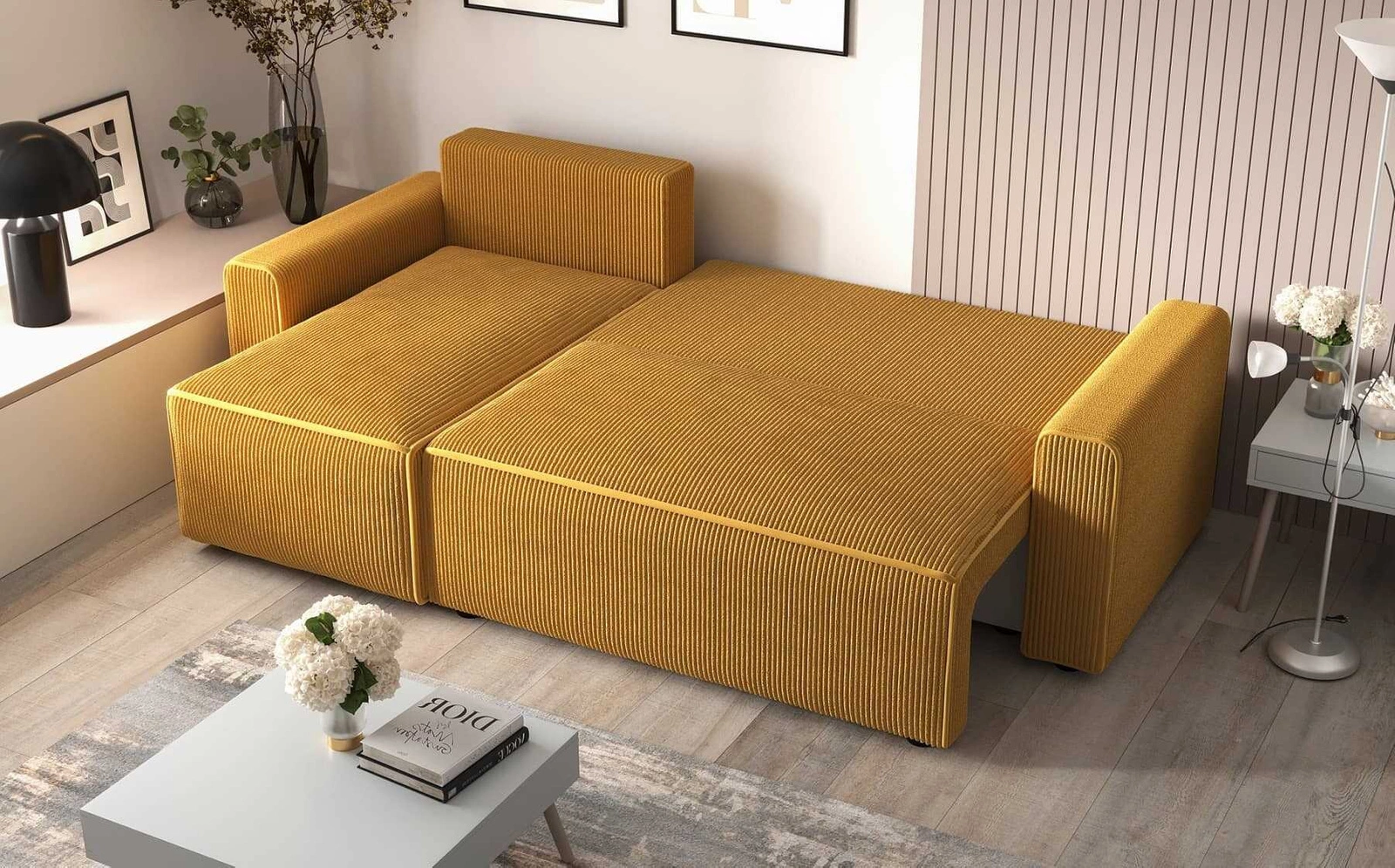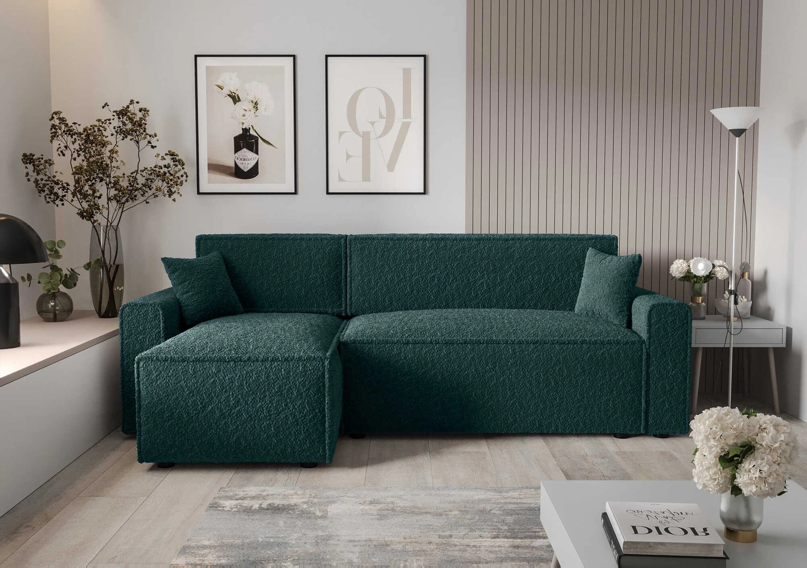 Eckeinheit mit Schlaffunktion Brandon Bis ist ein einfaches Möbelstück mit modernem Design, das sich perfekt in jede Einrichtung einfügt. Das Eckteil ist vollständig mit Stoff bezogen o strukturiert, in Schleifen oberflächen Anthologie 13. Charakteristisch für dieses Gewebe sind die zahlreichen Schlingen und knoten auf der Oberfläche des Gewebes, die in Form und Größe unregelmäßig sind. Der Stoff ist sehr weich und dennoch stark und robust. Anthology Möbelstoff zeigt eigenschaften hydrophob, was eine begrenzte Flüssigkeitsaufnahme gewährleistet. Der Stoff ist auch flammhemmend, wie auch leicht sauber zu halten. Dadurch wird das Brandon Bis Klapp-Ecksofa lange Zeit ästhetisch und elegant aussehen. Das Eckmöbel mit täglicher Schlaffunktion ist aus hochwertigen Materialien gefertigt, die resistent gegen äußere Einflüsse wie Möbelbezüge und verschiedene Arten von Stößen sind.