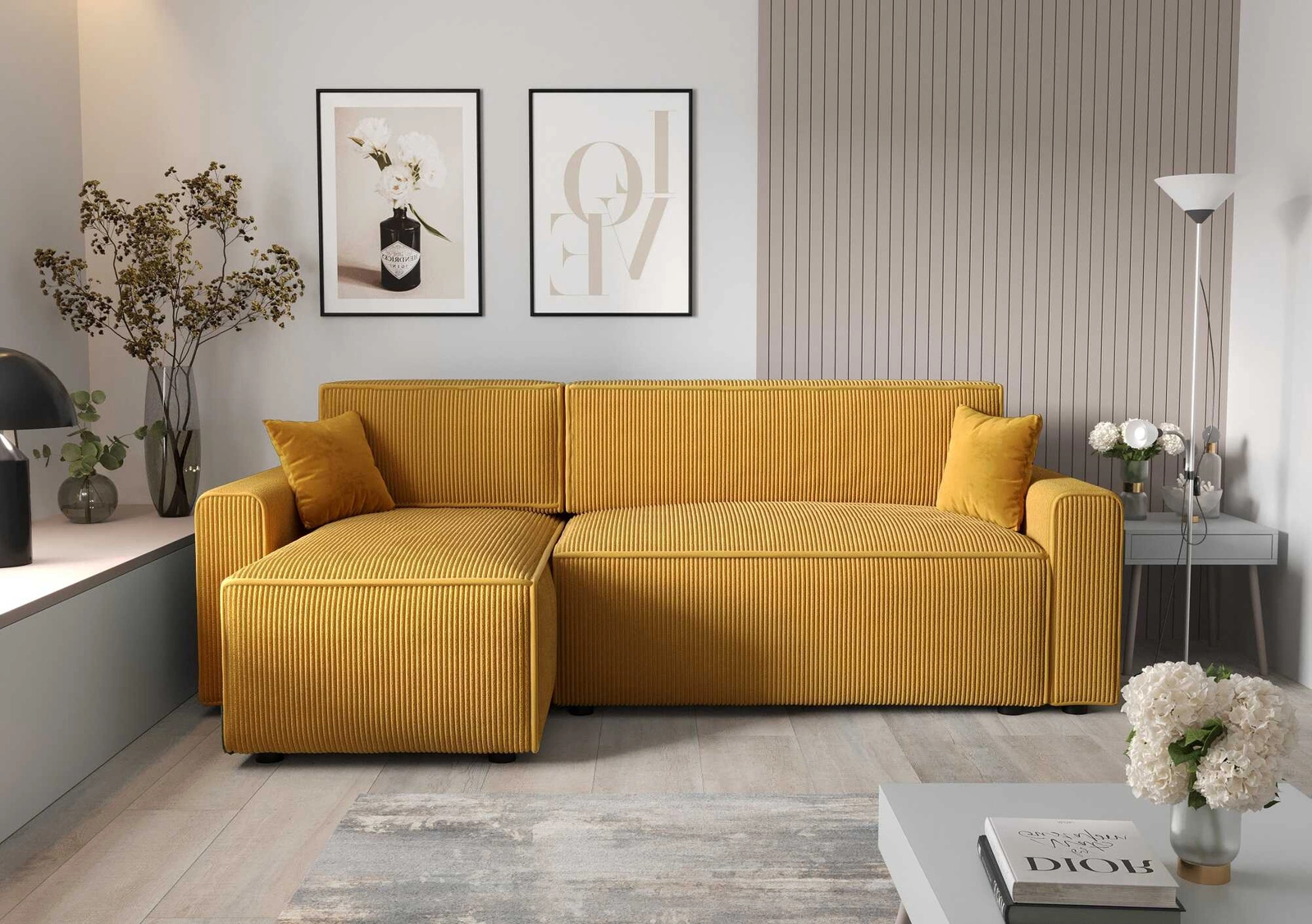 - Das Ecksofa Brandon Bis mit Schlaffunktion ist ein attraktives Möbelstück, das in jedem Raum Ihres Zuhauses seinen Platz finden wird! Ecksofa aus weichem Cordstoff mit ausdrucksstarken und dicken Streifen, die dem Sofa einen besonderen Charakter verleihen