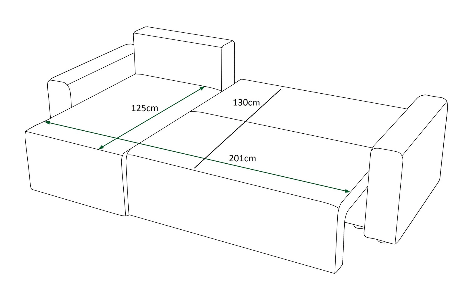 Das Ecksofa mit Schlaffunktion eignet sich dank seiner optimalen Maße und seiner breiten Funktionalität perfekt als Ecksofa für ein Wohnzimmer oder als klappbares Ecksofa für ein Jugendzimmer. Breite der Ecke 231 cm, maximale Höhe 90 cm und Tiefe 140 cm. Die Liegefläche der Eckeinheit beträgt 125x201 cm. Die Sitzhöhe des Möbels beträgt 43 cm, und die Höhe der Rückenlehne beträgt 47 cm. Gewellte Federn und HR30-Schaumstoff ist das Material, aus dem der Sitz der Ecke hergestellt ist. Rückendeckung kissen garantiert komfortable Entspannung nach einem langen Tag, die Sie und Ihre Gäste auf diesem einzigartigen Ecksofa schätzen werden!