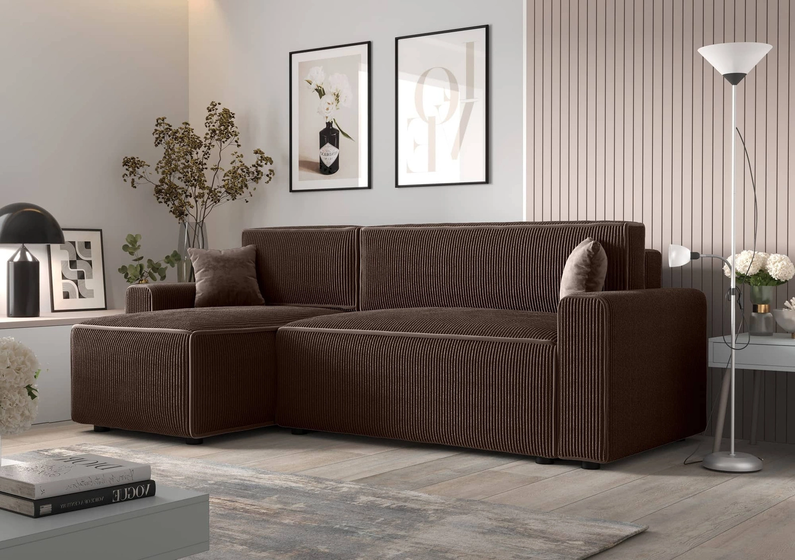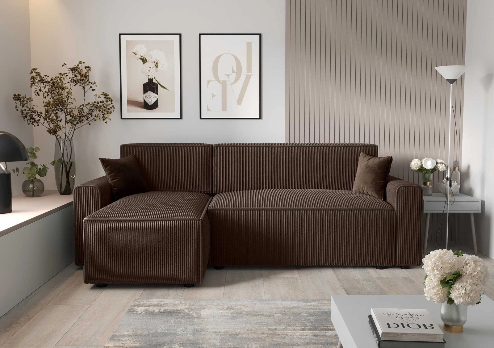 • Das Ecksofa Brandon Bis mit Schlaffunktion ist ein attraktives Möbelstück, das in jedem Raum Ihres Zuhauses seinen Platz finden wird! Ecksofa aus weichem Cordstoff mit ausdrucksstarken und dicken Streifen, die dem Sofa einen besonderen Charakter verleihen