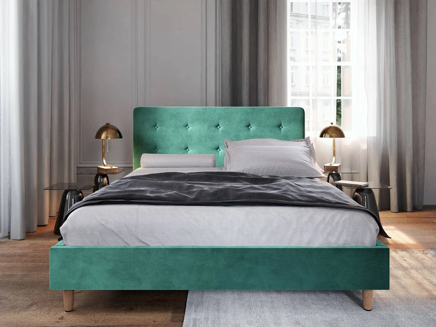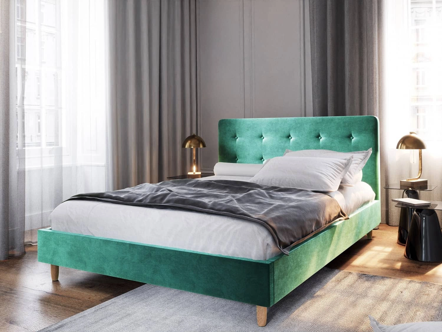Das Polsterbett Noiro 180x200 in Grün ist ein stilvolles Möbelstück, das perfekt in jedes Schlafzimmer passt.