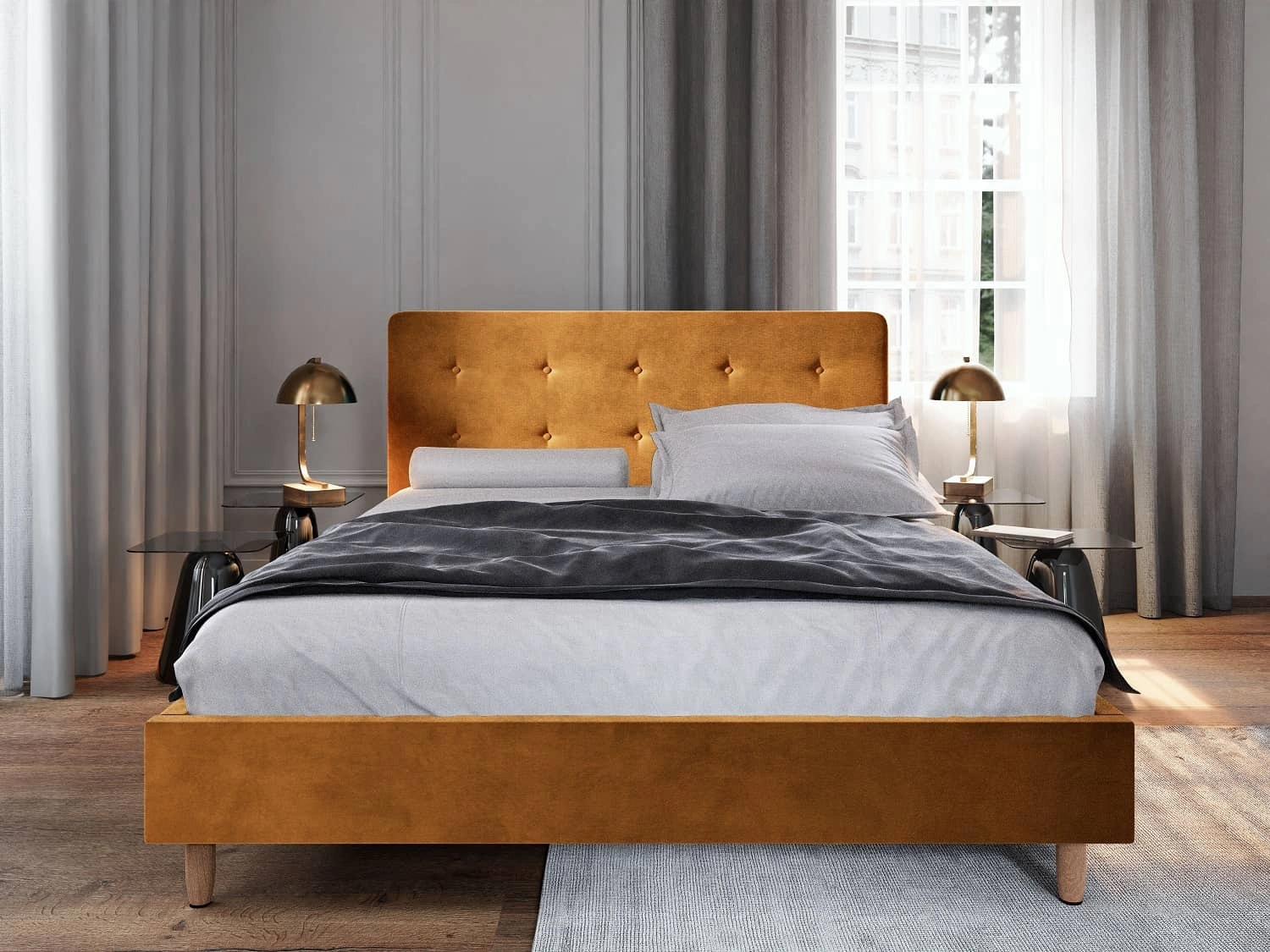 Das Polsterbett Noiro 140x200 in senf ist ein stilvolles Möbelstück, das perfekt in jedes Schlafzimmer passt.