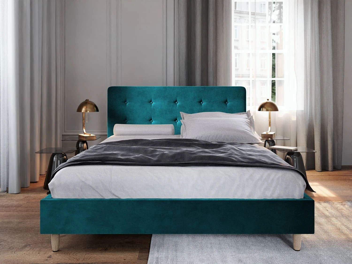 Das Polsterbett Noiro 140x200 in Türkis ist ein stilvolles Möbelstück, das perfekt in jedes Schlafzimmer passt.
