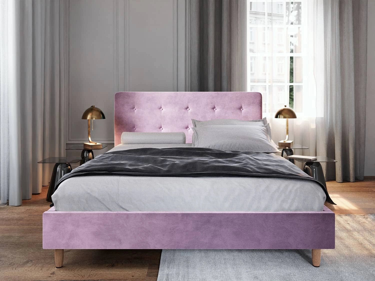 Das Polsterbett Noiro 140x200 in Puderrosa ist ein stilvolles Möbelstück, das perfekt in jedes Schlafzimmer passt.