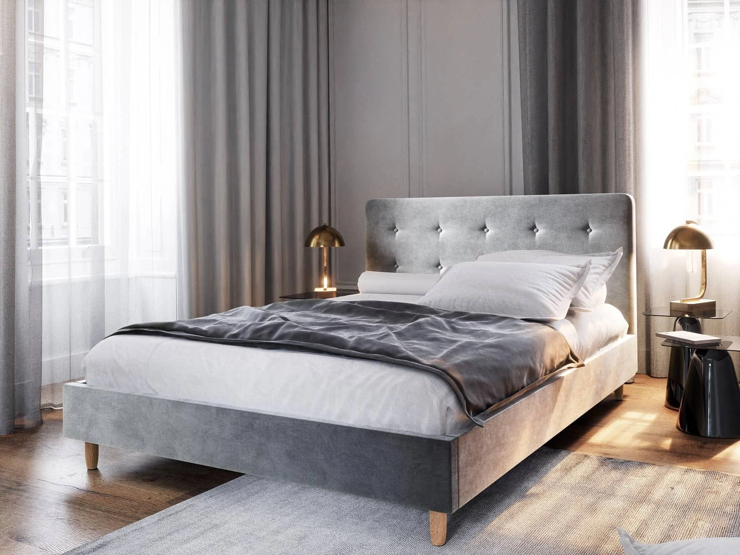 Bett aus Stoff Typ plüsch Ithaca 50 garantiert ein Höchstmaß an Komfort und Funktionalität für die tägliche Entspannung im Schlafzimmer. Der Stoff wird hergestellt aus leichte Reinigung und weist Eigenschaften auf begrenzung der Flüssigkeitsaufnahme. Dank der Eigenschaften des verwendeten Stoffes behält das Polsterbett sein ursprüngliches Aussehen für lange Zeit. Das Design des Bettes bietet große Stabilität und Komfort bei der Benutzung. Das Design des Bettes sorgt für große Stabilität und Komfort bei der Benutzung. Der Bettrahmen ist aus Holz und Möbelplatte gefertigt. Gesteppt das Kopfteil ist ein Blickfang und verleiht dem Bett einen besonderen Charakter. Die Bettfüße sind aus Buchenholz gefertigt.