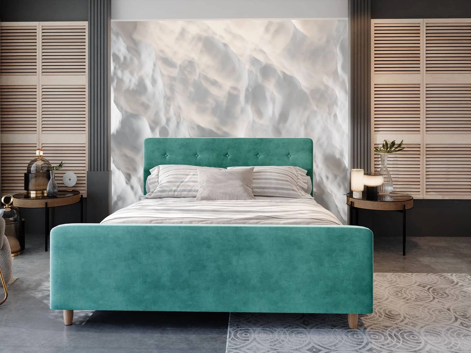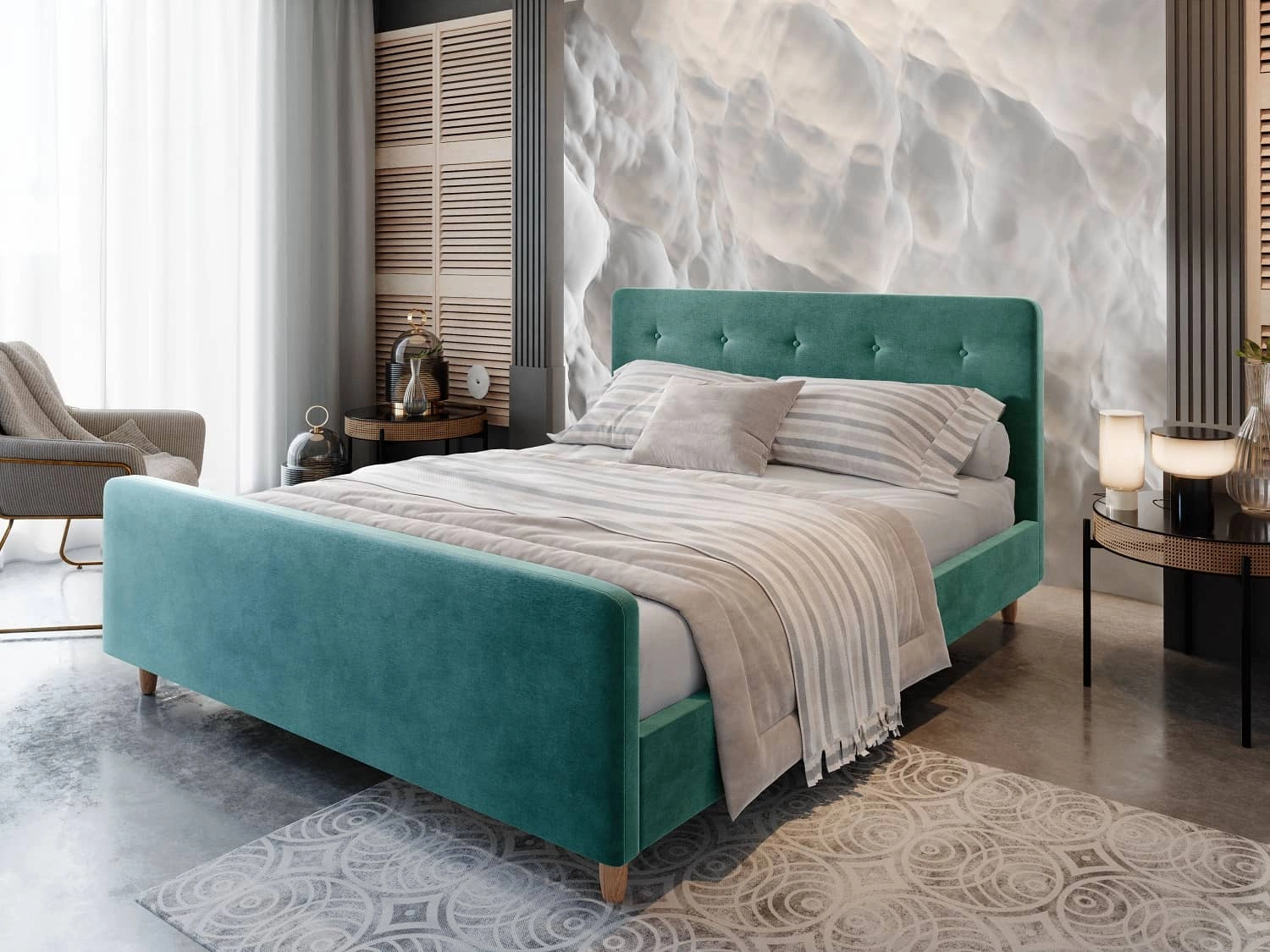 Das Polsterbett Isara 140x200 in Grün ist ein stilvolles Möbelstück, das perfekt in jedes Schlafzimmer passt.