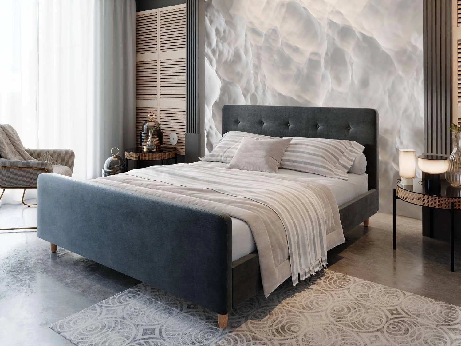 Gepolsterte Bett Isara – Moderner Komfort in Graphit