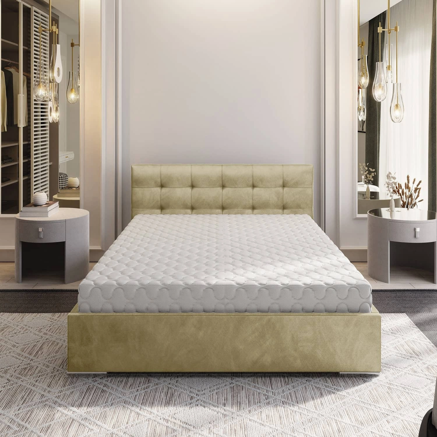 Zur Standardausstattung des Bettes gehören stabiler Metallrahmen mit elastischen Latten. Zie Dichte der Buchenholzlatten gewährleistet eine gute Unterstützung und Nutzung der Matratze. Die verwendeten Rohstoffe und robuste Bauweise rahmen, erlauben die volle Zufriedenheit beim Schlafen auf einer Matratze Ihrer Wahl zu erreichen. Der Matratzenrahmen ist mit Gasflaschen ausgestattet, die das Anheben erleichtern.