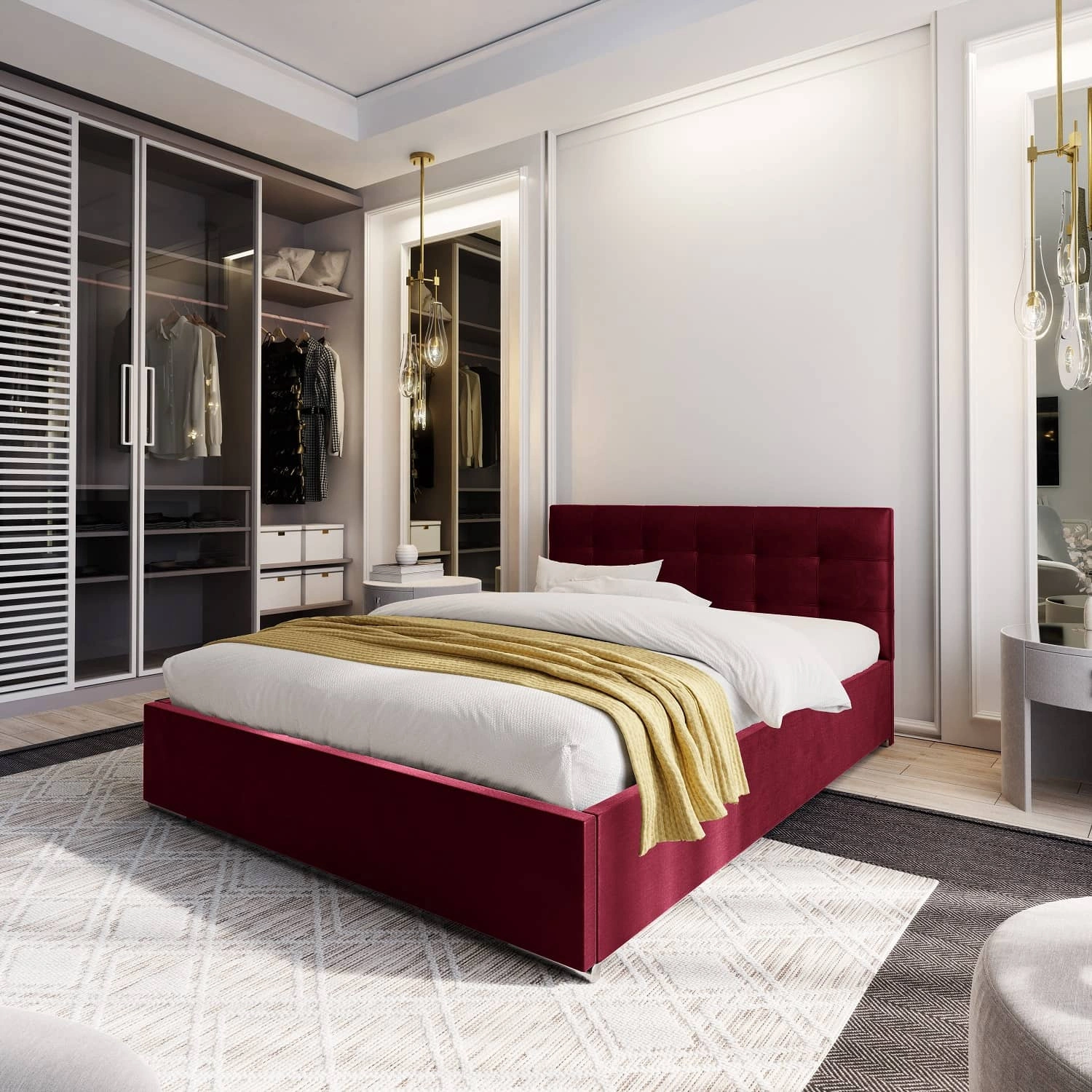 Das Polsterbett Montigo 160x200 in Burgunderrot ist die ideale Lösung für modern, skandinavisch und klassisch eingerichtete Schlafzimmer.