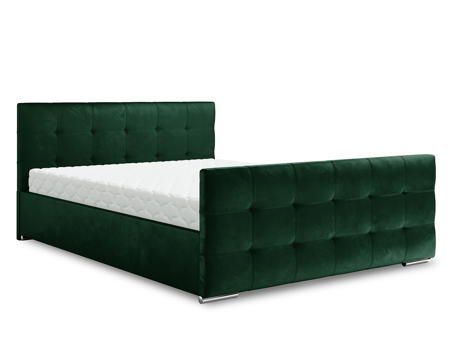 Polsterbett Verlan 140x200 flaschengrün mit Container im modernen skandinavischen Stil mit gestepptem Kopf- und Fußteil