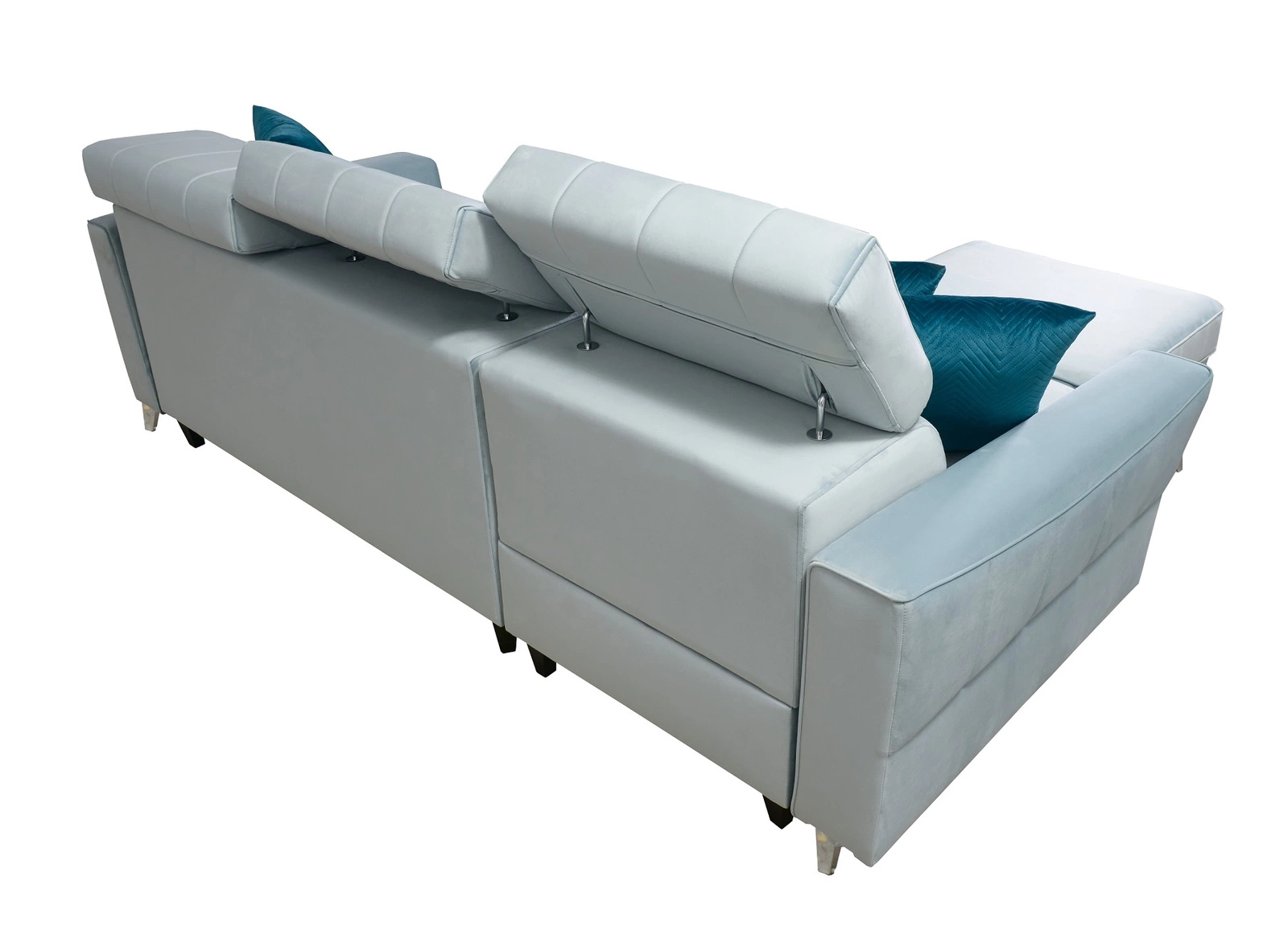 Die Extras dieses Möbelstücks, die jeder Nutzer zu schätzen weiß, sind der Bettkasten, die Schlaffunktion, die verstellbaren Kopfstützen und die stabilen Metallfüße.