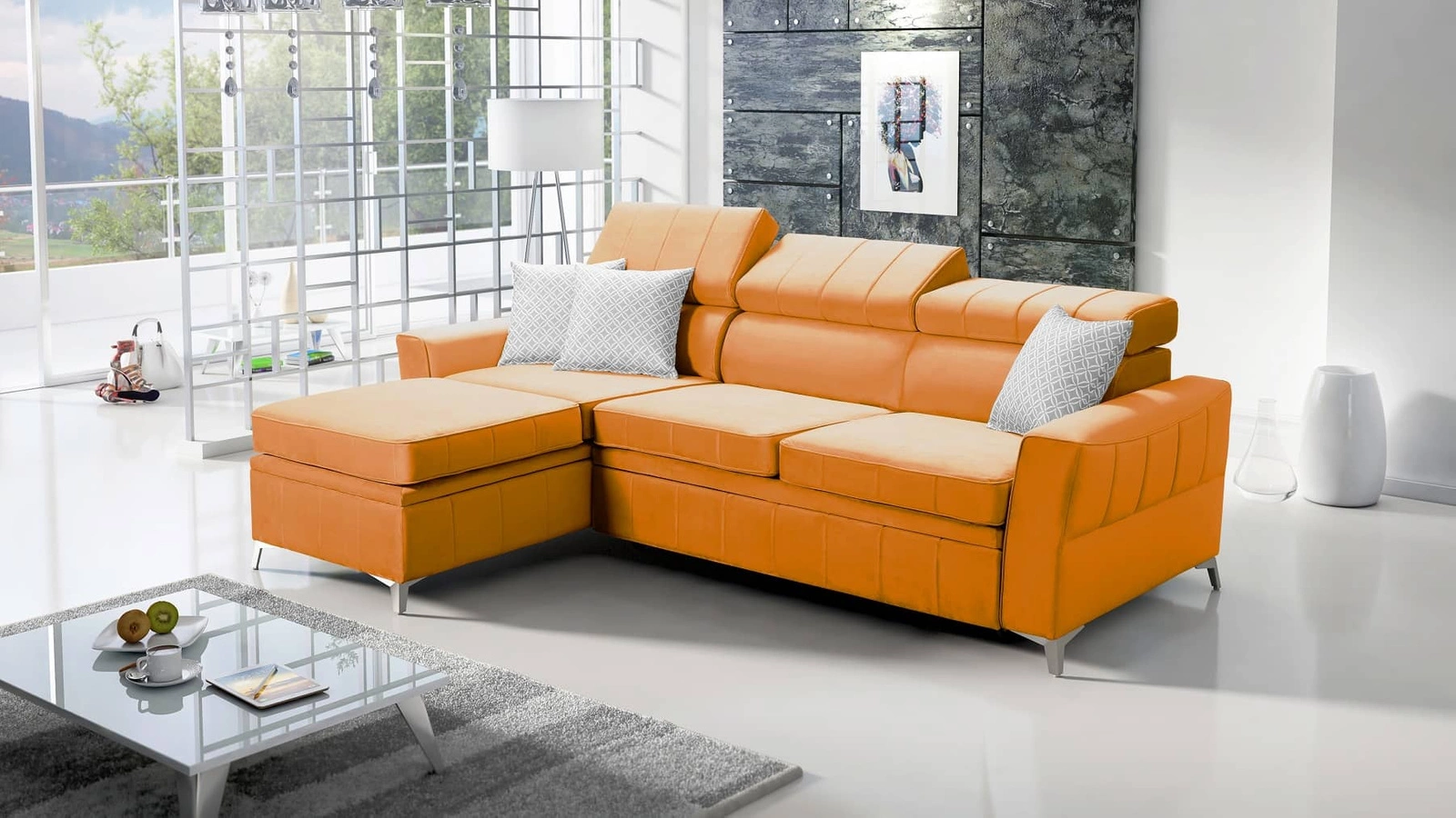 Details zu dem modernen Ecksofa mit Schlaffunktion Rava