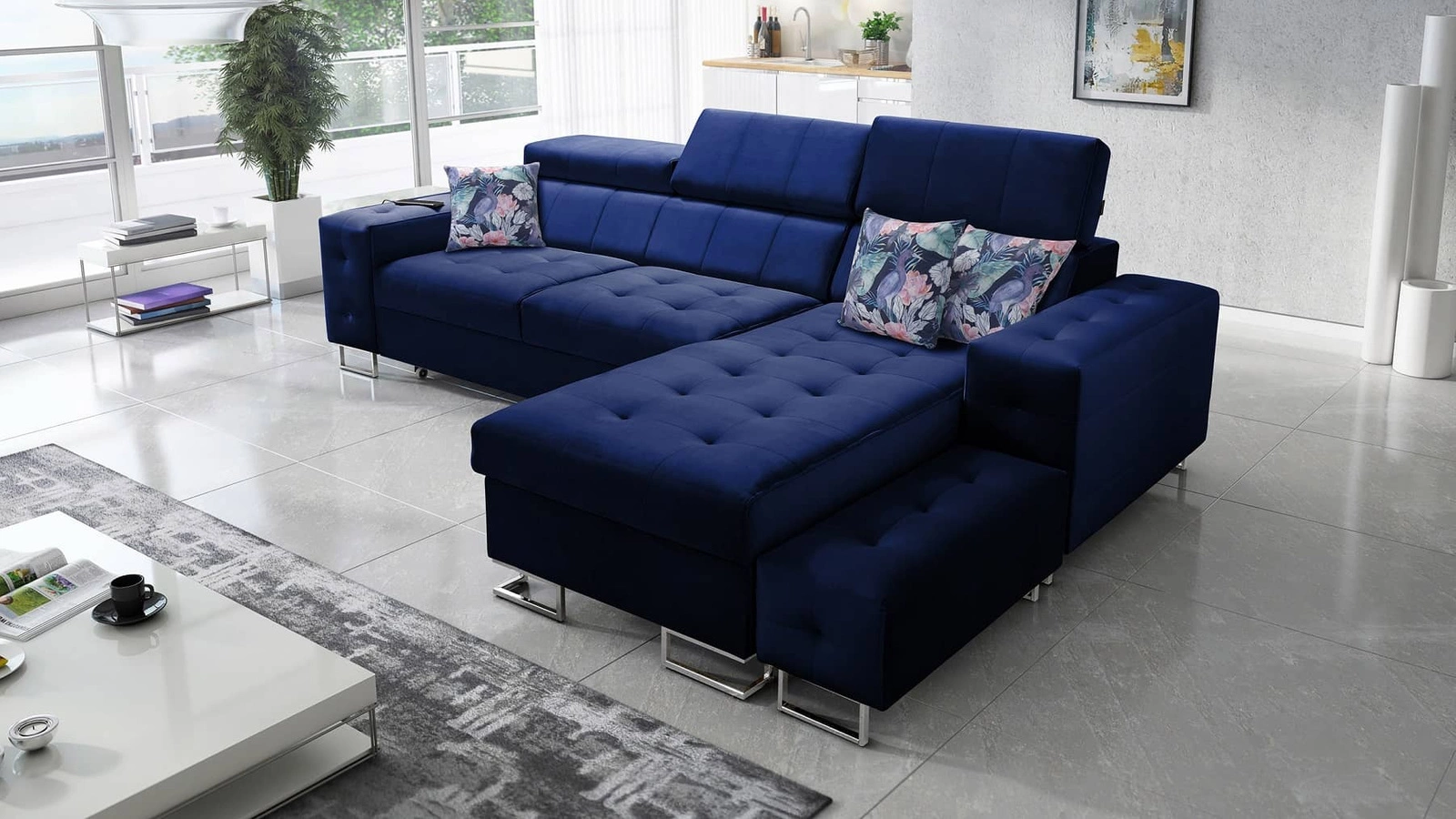 Hampton Ecksofa in Marineblau mit verstellbaren Kopfstützen ist ein elegantes Möbelstück, das sich perfekt in jede Einrichtung Ihres Hauses einfügt!