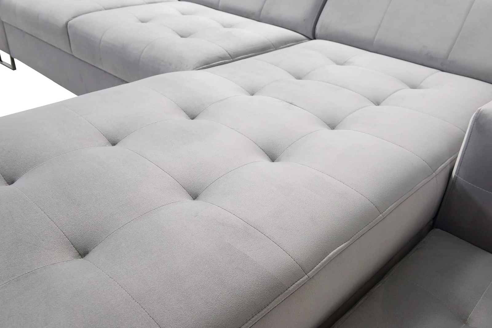 Ecksofa mit Schlaffunktion Hampton grau Esche rechts stilvolle Steppung auf der Sitzfläche weicher Polsterstoff Ecksofa mit Verlängerung
