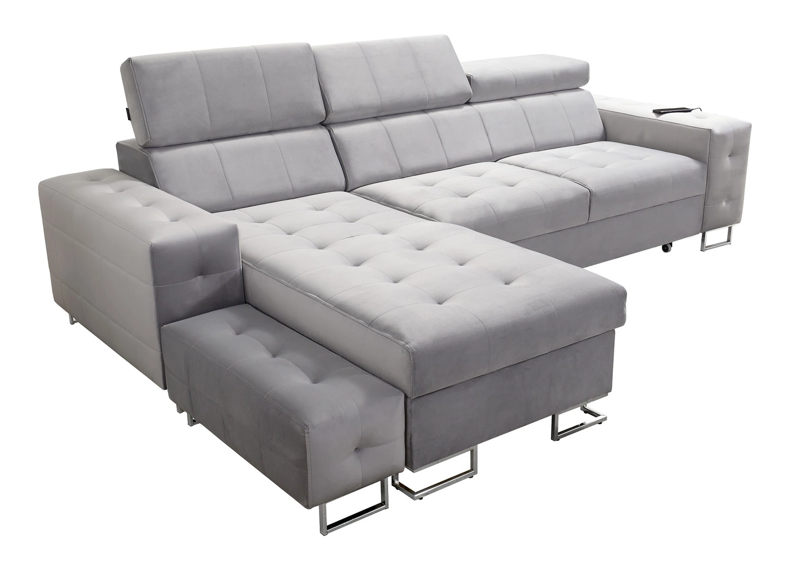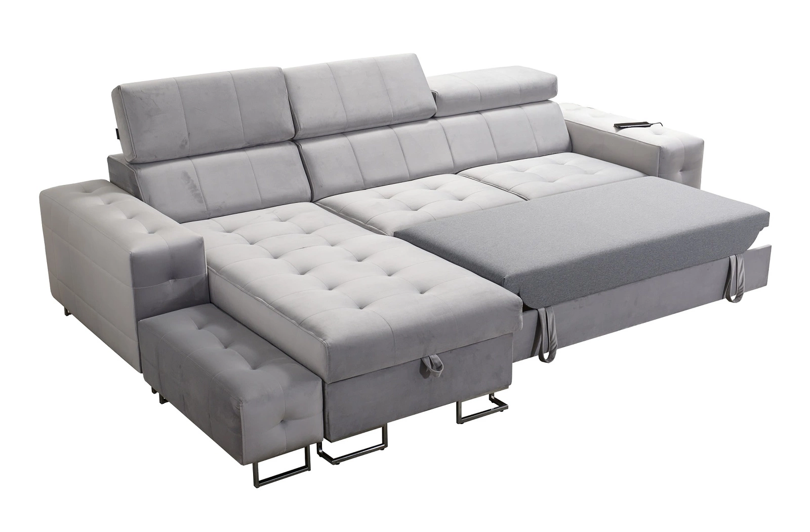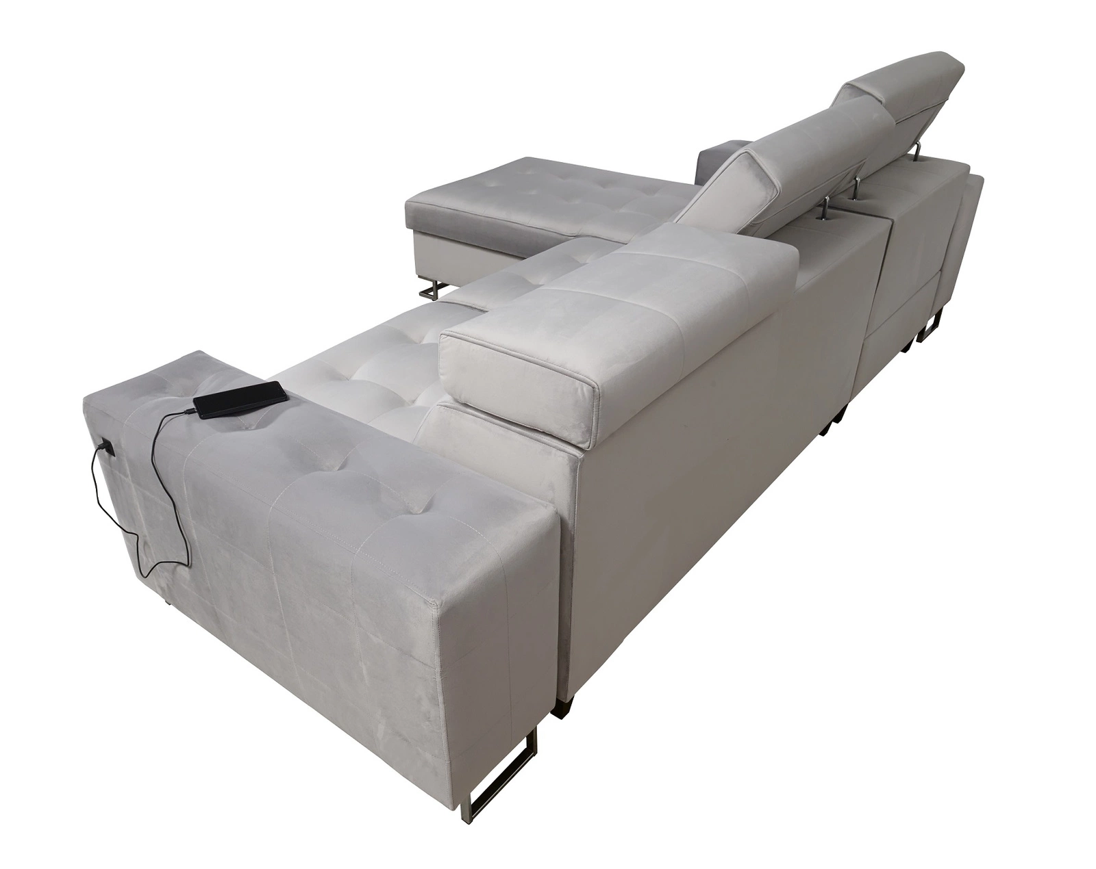 Die Extras dieses Möbelstücks, die alle Nutzer schätzen werden, sind der Bettzeugbehälter, die Schlaffunktion, die verstellbaren Kopfstützen und die USB-Ladebuchse.