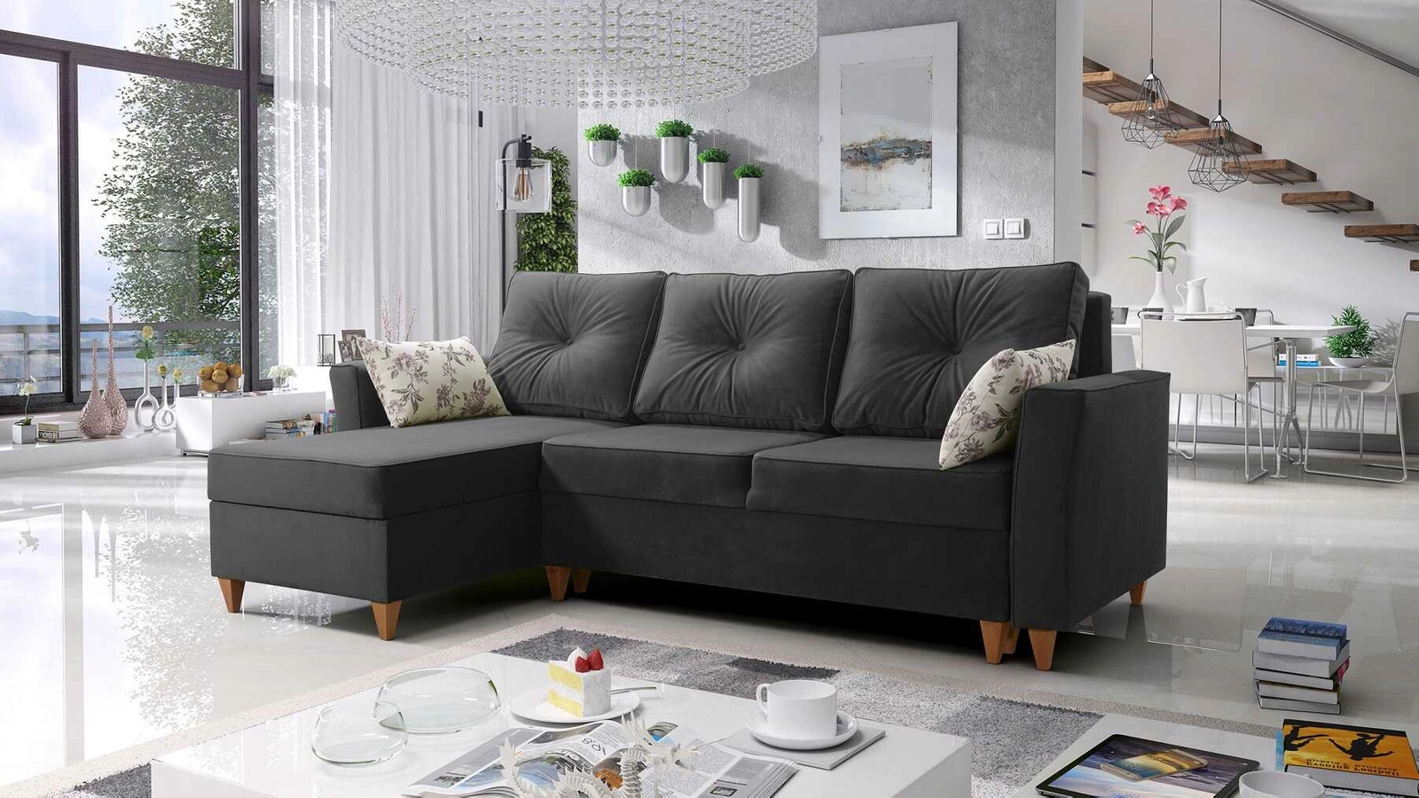 Ecksofa mit Schlaffunktion Topeka graphit linke Seite stilvolles und modernes Design, das sich in jede Einrichtung einfügt