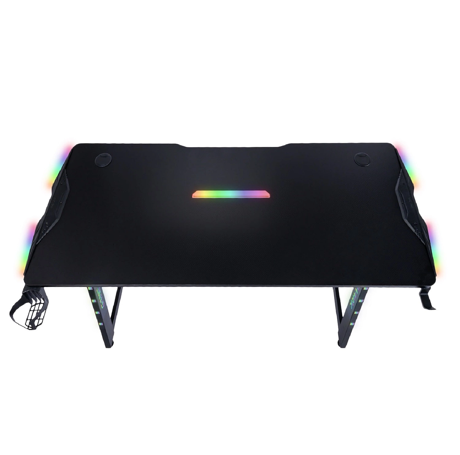 Zone Gaming Desk schwarz beeindruckendes Design stabile Metallkonstruktion angereichert mit LED-Beleuchtung kohlenstoffbeschichtete Platte