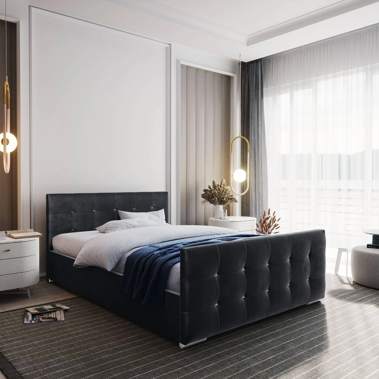 - Das Alford-Polsterbett ist die ideale Lösung für modern, skandinavisch und klassisch eingerichtete Schlafzimmer. Die Konstruktion des Bettes gewährleistet eine hohe Stabilität und einen hohen Nutzungskomfort. Gestepptes Kopf- und Fußteil mit Kristallen is