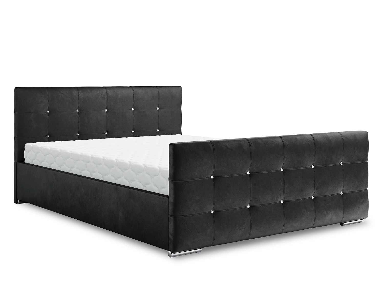 Bett aus Stoff typ samt Monolith 97 garantiert ein Höchstmaß an Komfort und Funktionalität für die tägliche Entspannung im Schlafzimmer. Der Stoff hat eine Beschichtung aus hydrophob, was eine begrenzte Flüssigkeitsaufnahme gewährleistet. Die interessante Struktur des Gewebes verleiht einen einzigartigen Charakter. Dank der Eigenschaften des verwendeten Stoffes behält das Bett lange Zeit sein ursprüngliches Aussehen. Das Design des Bettes bietet große Stabilität und Komfort bei der Benutzung. Der Bettrahmen ist aus Holz und Möbelplatte gefertigt. Gesteppt kopf- und Fußteil fertig mit Kristallen ist ein Blickfang und verleiht dem Bett einen besonderen Charakter.
