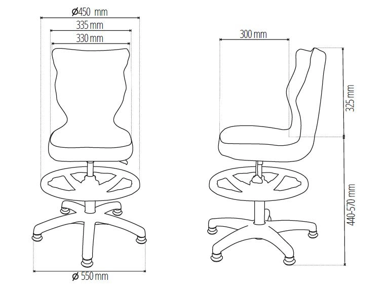Für zusätzlichen Komfort hat der Stuhl konturiert rückenlehne und Sitz, das gewährleistet die richtige Ausrichtung der Wirbelsäule, die dem Benutzer maximale Entlastung der Wirbelsäule. Ein weiterer Vorteil des Stuhls ist höhenverstellung der Säule mit Fußstütze die Ihnen völlige Freiheit gibt, den Stuhl an Schreibtischen und Tischen anzubringen mit einer Höhe von 70-82 cm. Das Drehsystem macht den Stuhl bequem zu benutzen.