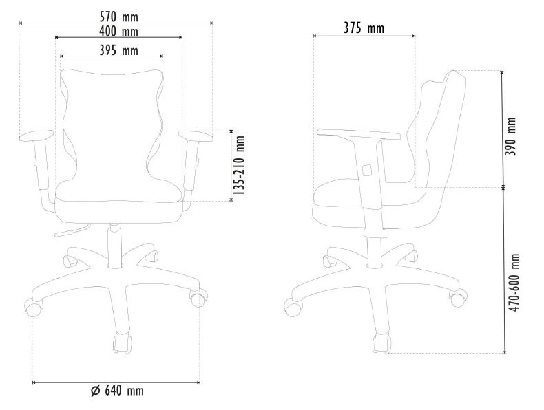 Abmessungen des Schreibtischstuhls: