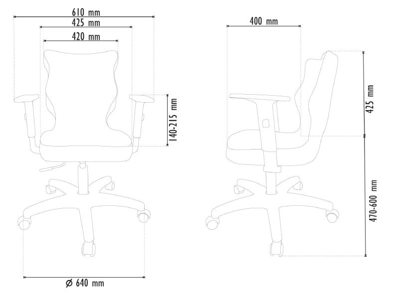Abmessungen des Schreibtischstuhls: