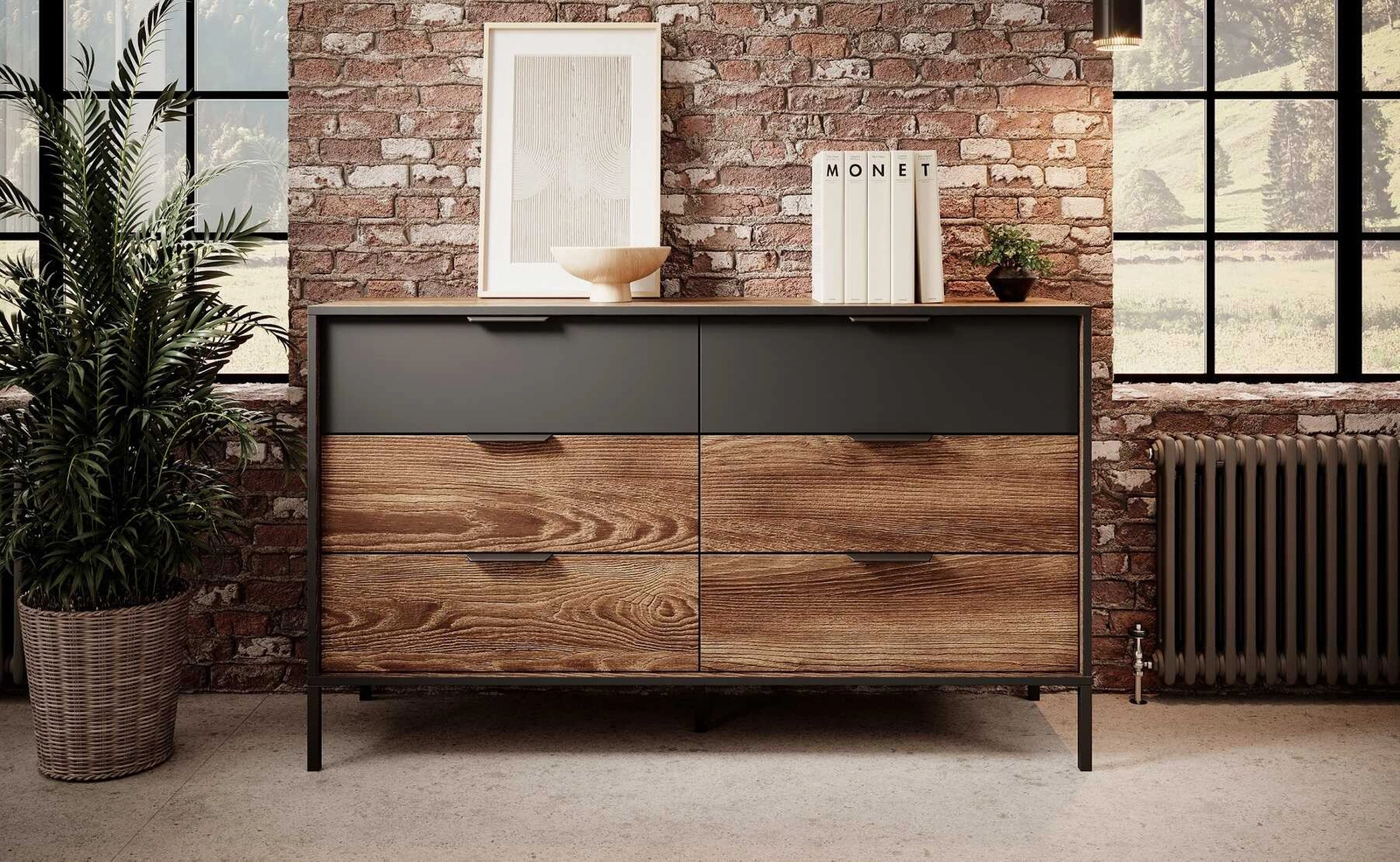 Die Kommode Dover in Kastanie/Anthrazit ist ein mutiger Vorschlag für Innenräume mit modernem Charakter.