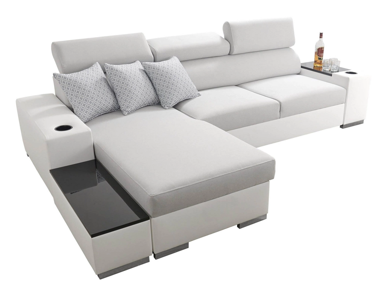 Ecksofa Provo in Graphit/Weiß mit verstellbaren Kopfstützen ist ein elegantes Möbelstück, das zu jeder Einrichtung passt.