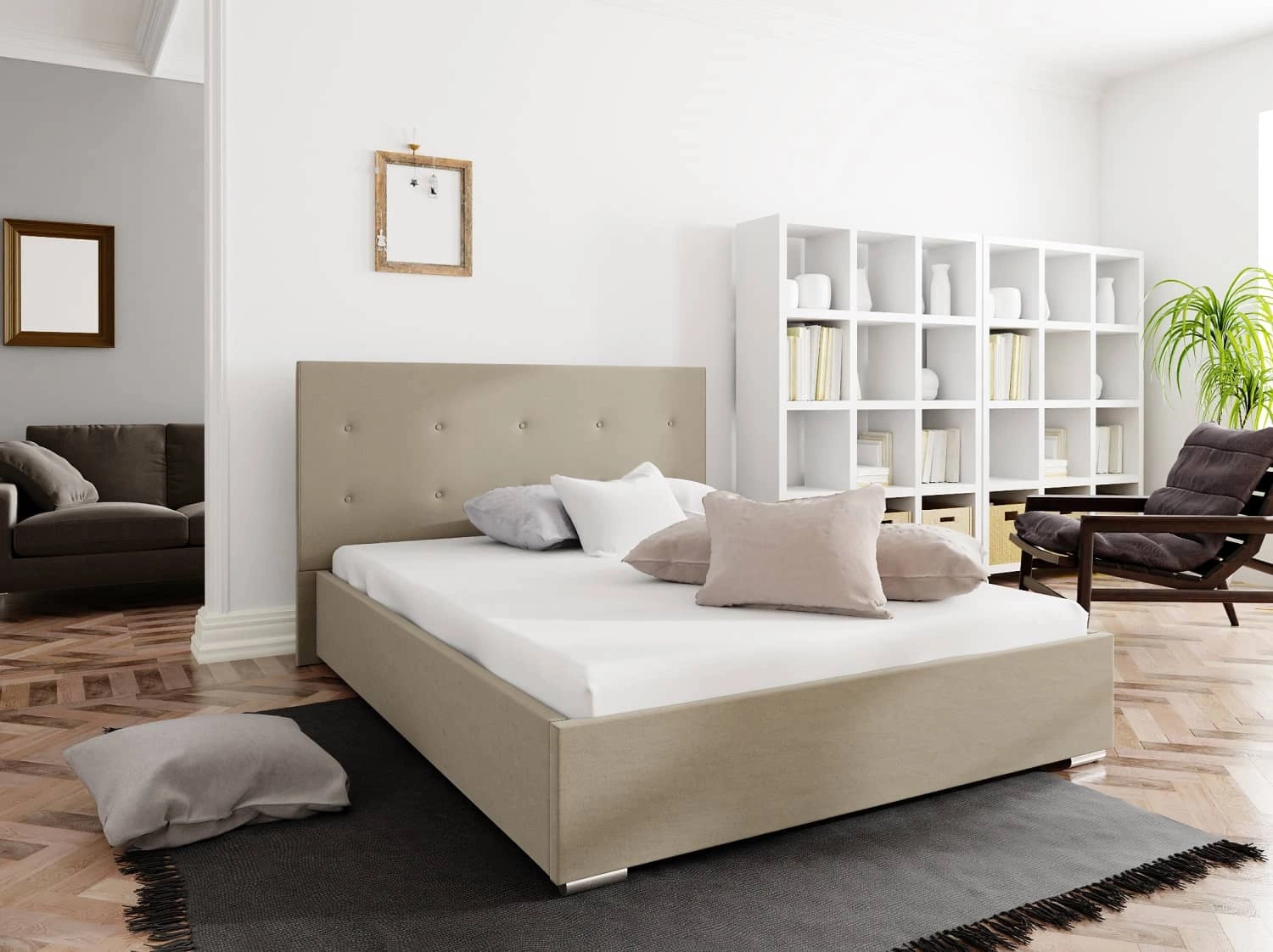 Das Polsterbett Bejar 160x200 in dunklem Beige ist eine ideale Lösung für modern oder klassisch eingerichtete Schlafzimmer.