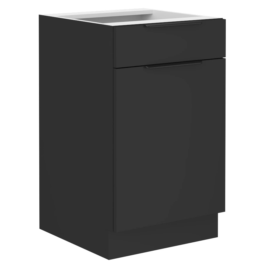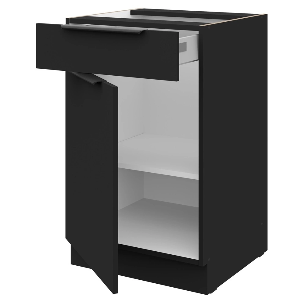 Stehender Küchenschrank mit Schublade und Regal Schwarz 50 D 1F 1S BB Metallkantengriffe feuchtigkeits- und beschädigungsbeständiger Schrank